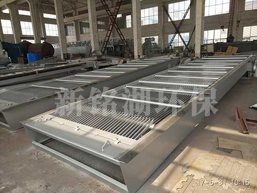 回转式机械格栅有栅齿、栅齿轴、链板等组成栅网,以替代传统格栅的栅条。栅网在机架内作回转运动,从而将污水中的悬浮物拦截并不断分离水中的悬浮物,因而工作效率高、运行平稳、格栅前后水位差小,并且不易堵塞。该机适合于作粗细格栅使用。