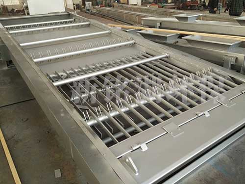 格栅清污机原理及结构:清污机关键由驱动器组织、声卡机架总程,传动齿轮、耙齿组、删条、底端拦栅等一部分构成。减速器驱动链轮使链耙牵引带系统软件转动运作,推动牵引带链间的耙齿陪同运作,因为每一个耙齿都插进删条中,能合理地将阻拦的废弃物耙送至声卡机架上端極限部位,耙齿在传动链条回变换向的全过程中,废弃物靠重量卸入下一程序流程机器设备,粘在耙齿上的小量废弃物,由特置的清污机构清除整洁。