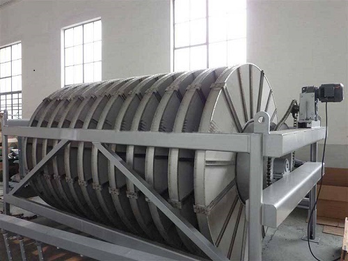 废水在作用力或充压注入生物滤池,历经固定不动于园盘状支撑架上的压滤机滤布,固态悬浮固体被截流于压滤机滤布两侧。滤后水根据管理中心管排出来,压滤机滤布微孔板5~20μm,全部全过程全自动持续。被截流的固态悬浮固体一部分地基沉降到水池,经常性由水池污泥浓缩池管排出来。另一部分固态悬浮固体粘附在压滤机滤布上,使池中水位线升高,水位线升高到某预订值时,起动反吸脂设备,另外园盘迟缓旋转,固定不动于压滤机滤布两侧的固态悬浮固体、刮泥等,被刮泥吸污设备刮掉粘附压滤机滤布表层的固态悬浮固体、刮泥等,另外园盘内的水被由内向型外吸脂,对压滤机滤布微孔板内的淤泥开展清理。